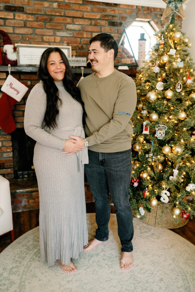 We started the session with just the two of them. Quiet moments, soft window light, and Christmas decor they already had up set the tone. Nothing overly styled, just natural connection and anticipation during a season that already feels full of emotion.