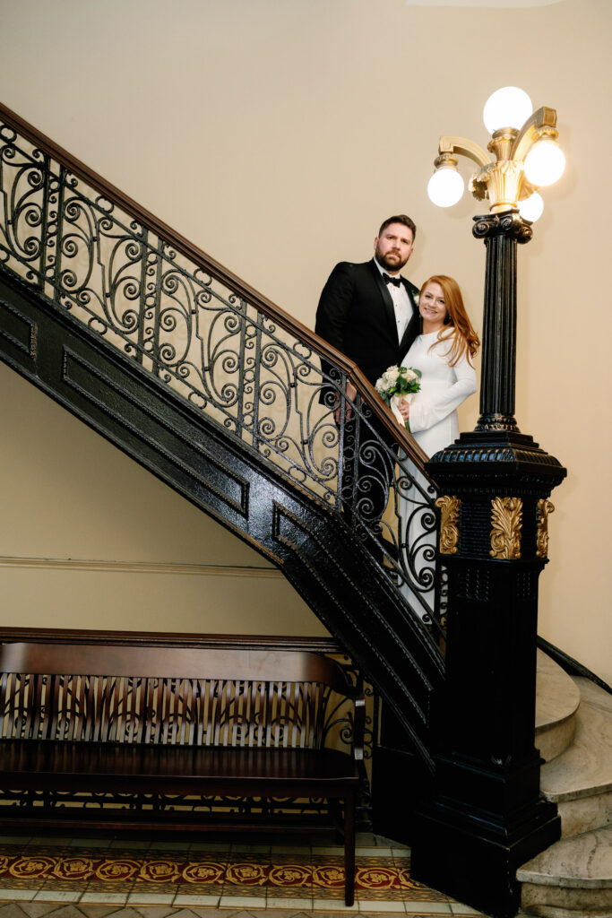 Their first look happened just outside the courthouse, and it was one of those calm, grounding moments that immediately slowed the day down. Before heading inside, we took some portraits around City Hall, giving them space to be present together before the ceremony.