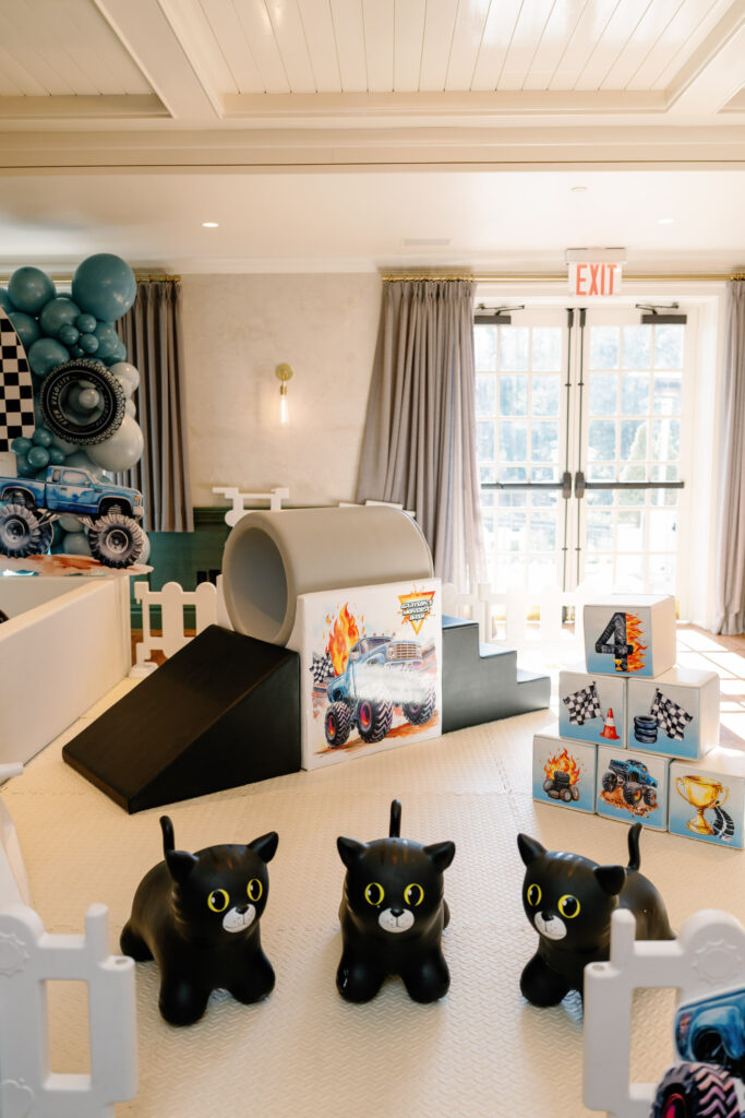 The party was hosted at Plandome Country Club, offering a spacious and comfortable setting for celebrating. Luxe Play NY created a soft play setup that kept the kids moving and engaged, while Balloons by Sorin tied everything together with bold, playful balloon installations that echoed the theme.