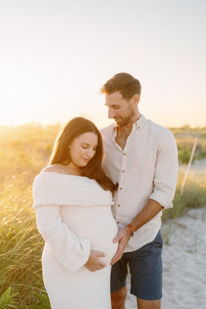 If you can, plan your session here around golden hour — that dreamy window just before sunset. The way the light hits the water and filters through the grasses makes the whole beach glow and flatters everyone in front of the lens. The skies often turn into those cotton candy pastels that Robert Moses is known for, which adds such a magical touch to portraits. Golden hour light is soft and flattering, and it really transforms the location into something unforgettable.